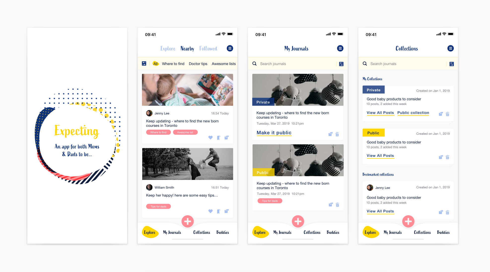 Based on interviews with expecting parents, a recurring theme I picked up was their vulnerability to feel stressed, anxious and overwhelmed. Therefore, one of the main goals when designing this application was to take care of their emotional needs - hence the visual direction to create something relaxing, and fun.