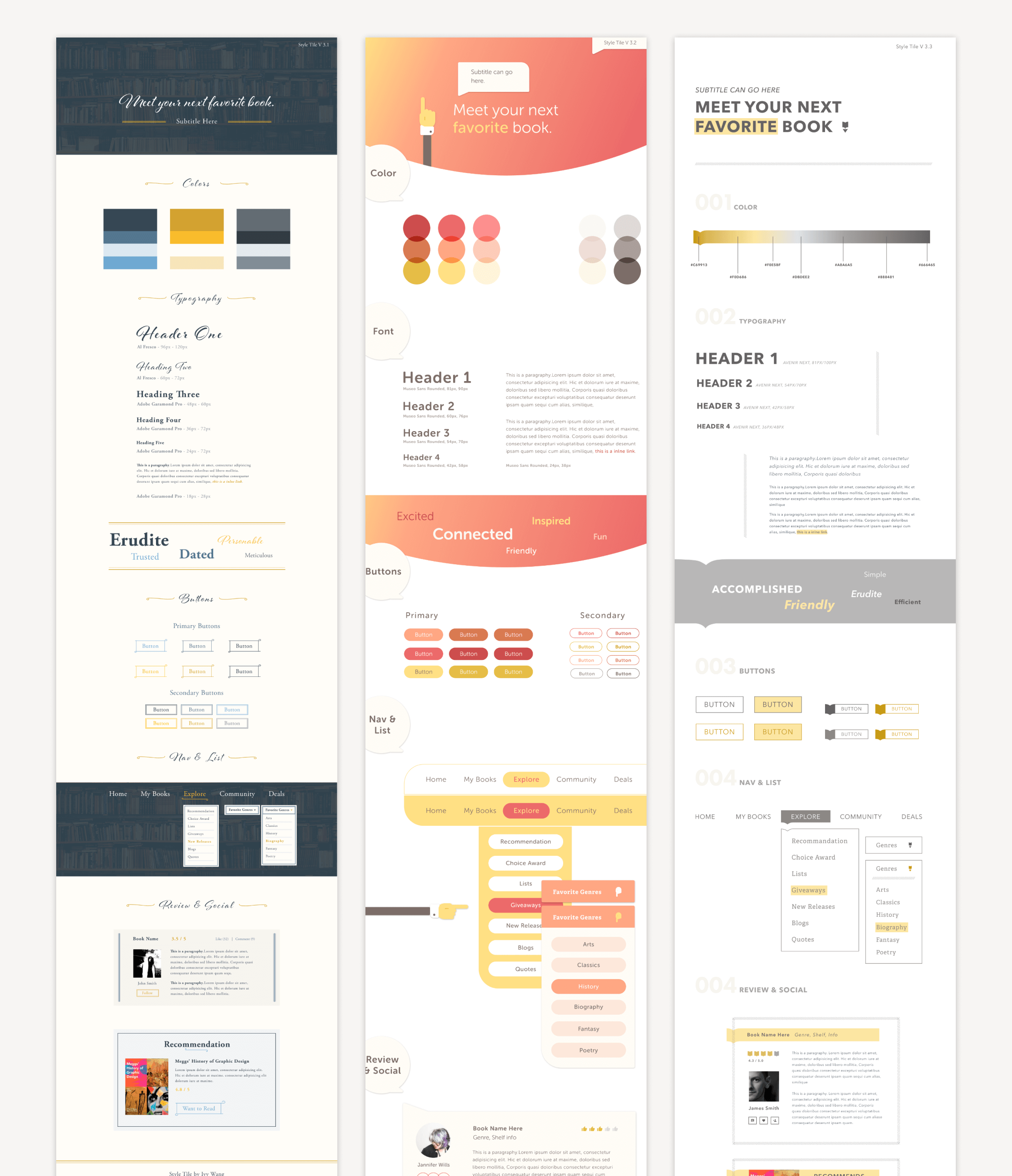 I reconsulted the users I interviewed previously, asking about their preferences for three of the style tiles and their reasons. Most of them thought that style tile number #3 (the right one) was closest to their expectation based on their experience with the application. However, the rounded shapes in style tile #2(the middle one) looked friendlier and could be a great balance to alleviate the intense feel of efficiency from style tile #3.