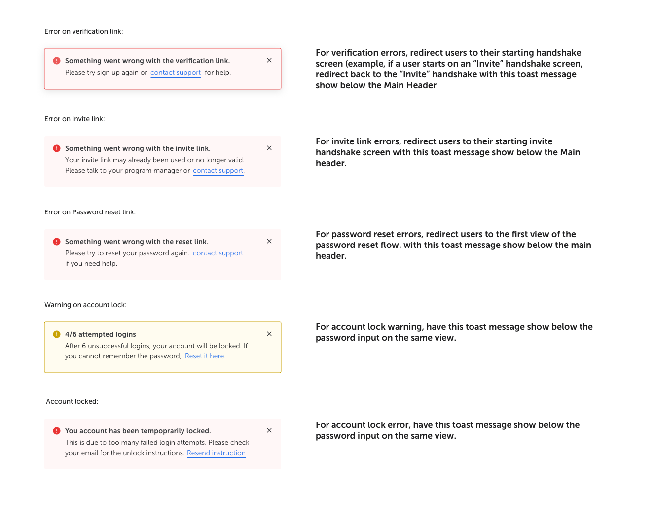 I went ahead and added the error messages for edge cases that we did not have before. This further helped to smooth the experience when something goes wrong during the signup process. When there is no guidance on what to do during errors, users can get stuck easily. Hence I included links in the messages to direct the users based on their scenarios.