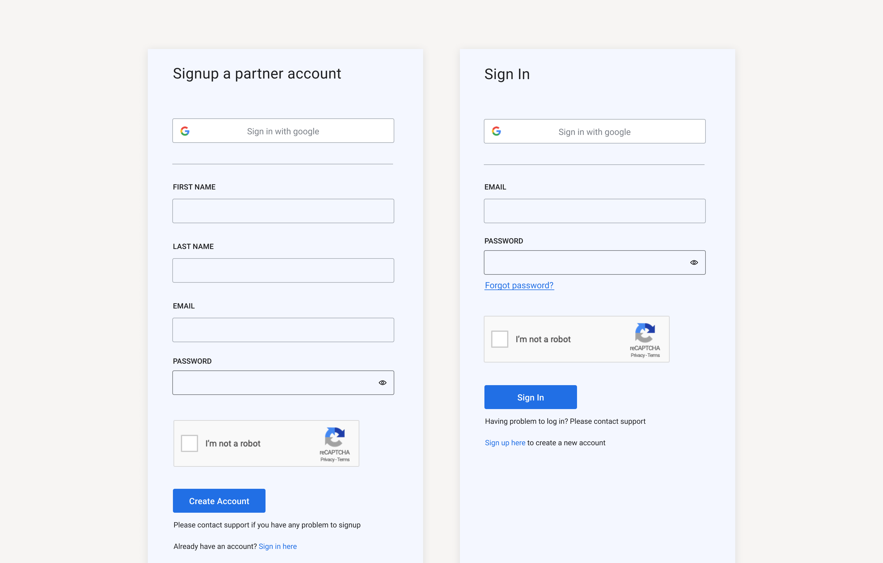 Previously, we had one Sign up page and one Sign in page: