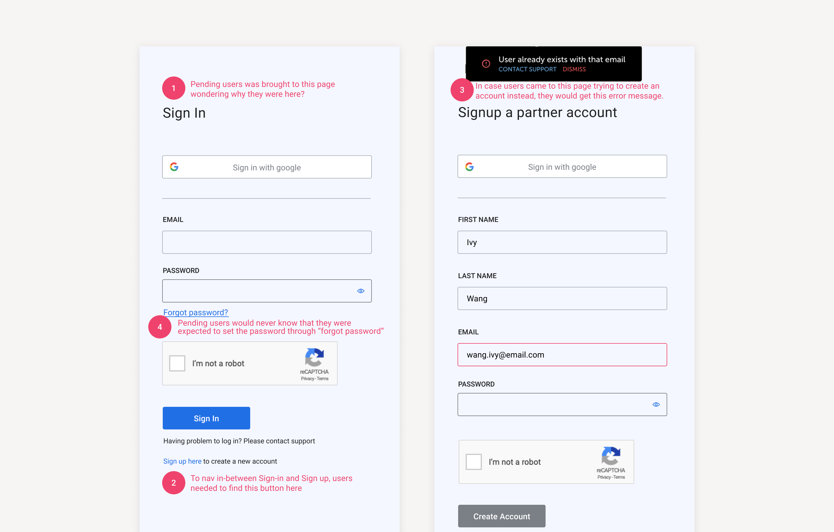 As a result, most of the pending users had no clue how to activate their accounts. They jumped back and forth between Sign in and Sign up pages and eventually called the support team for help.