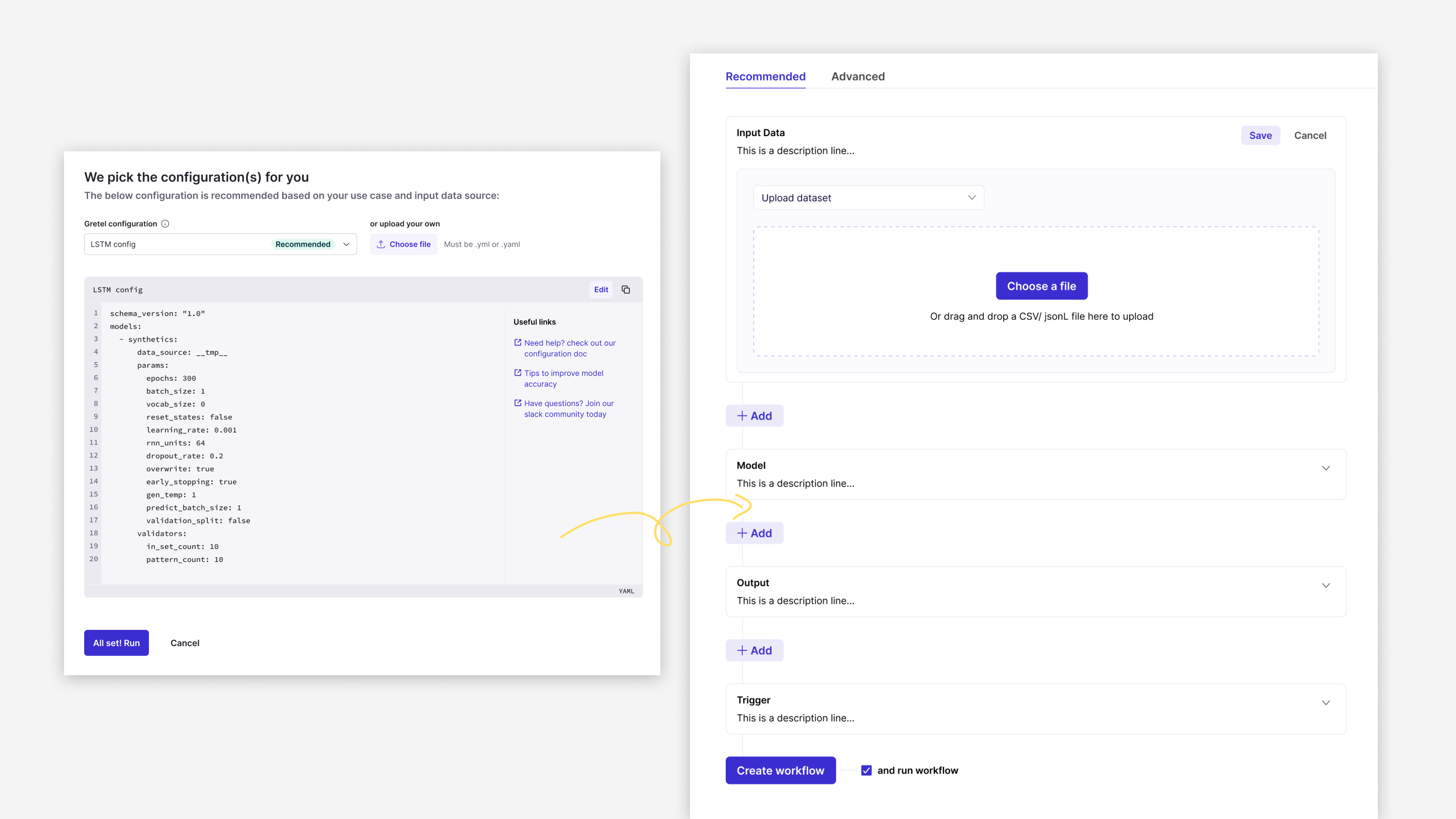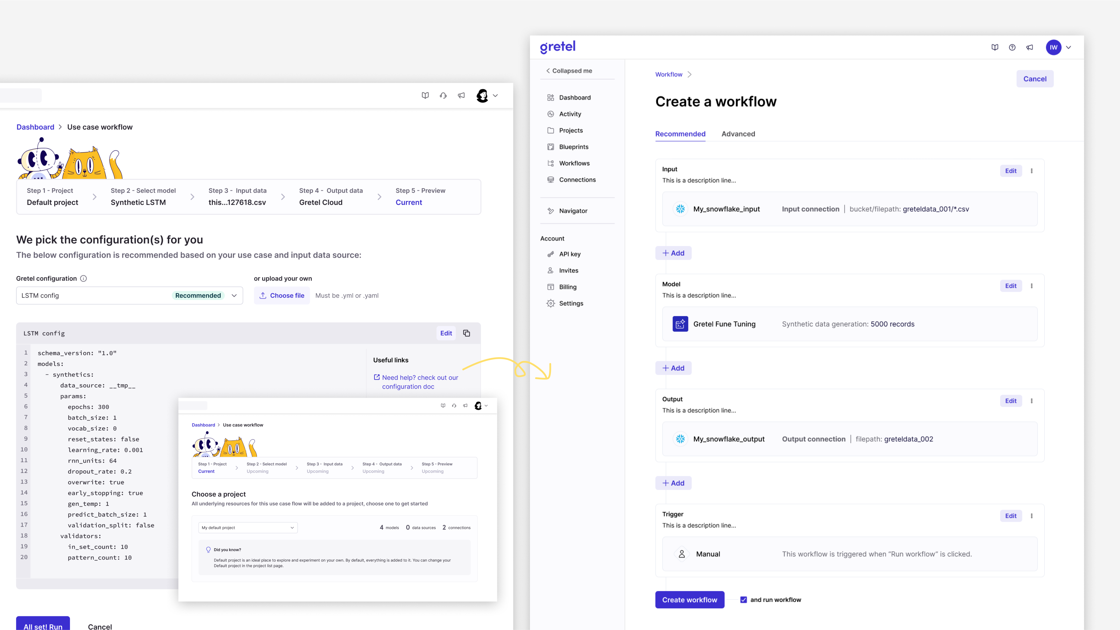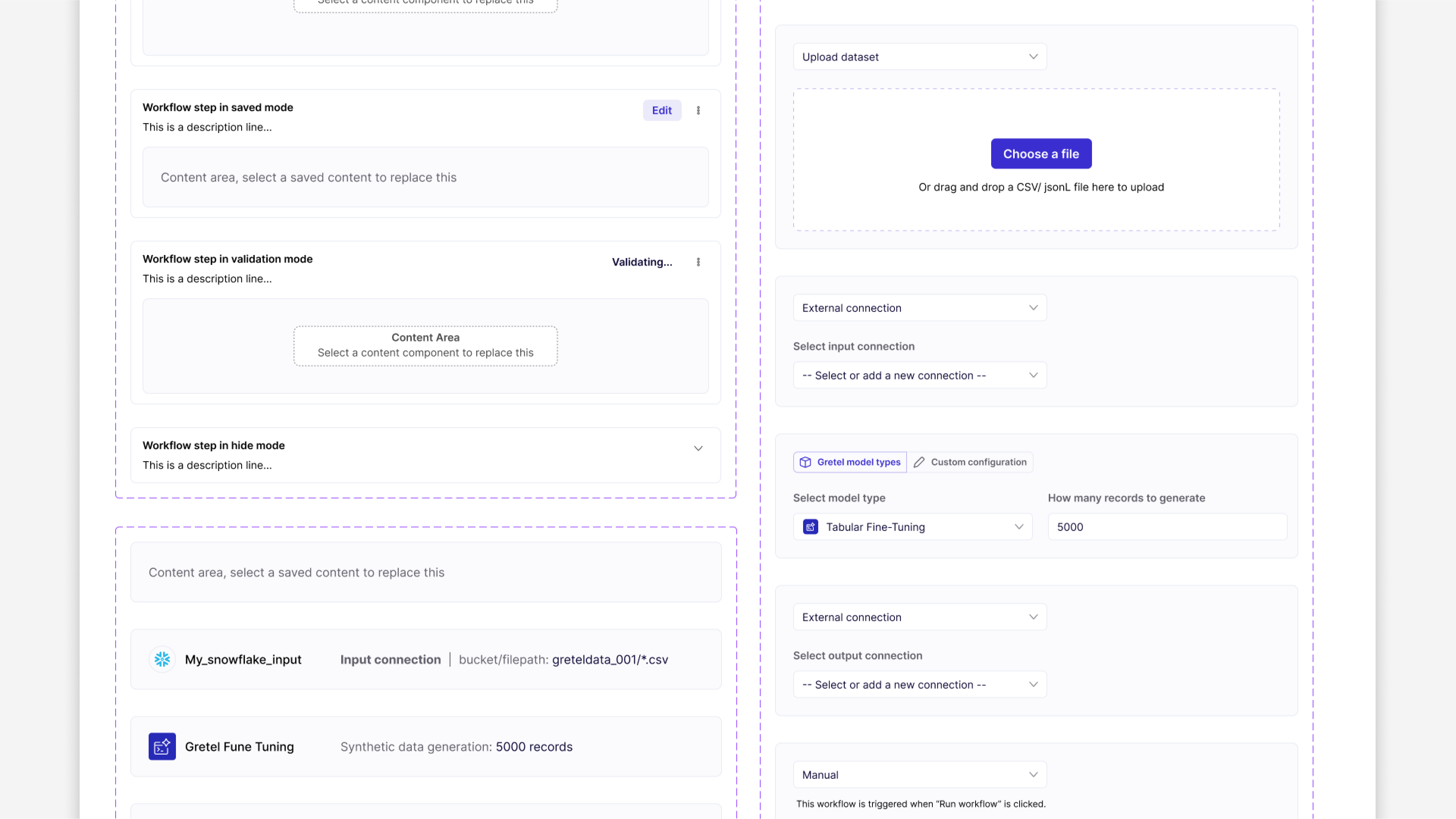 Gretel Workflow introduces an advanced layer to our existing synthetic AI models, transitioning from a manual data generation process to an automated, scalable system.