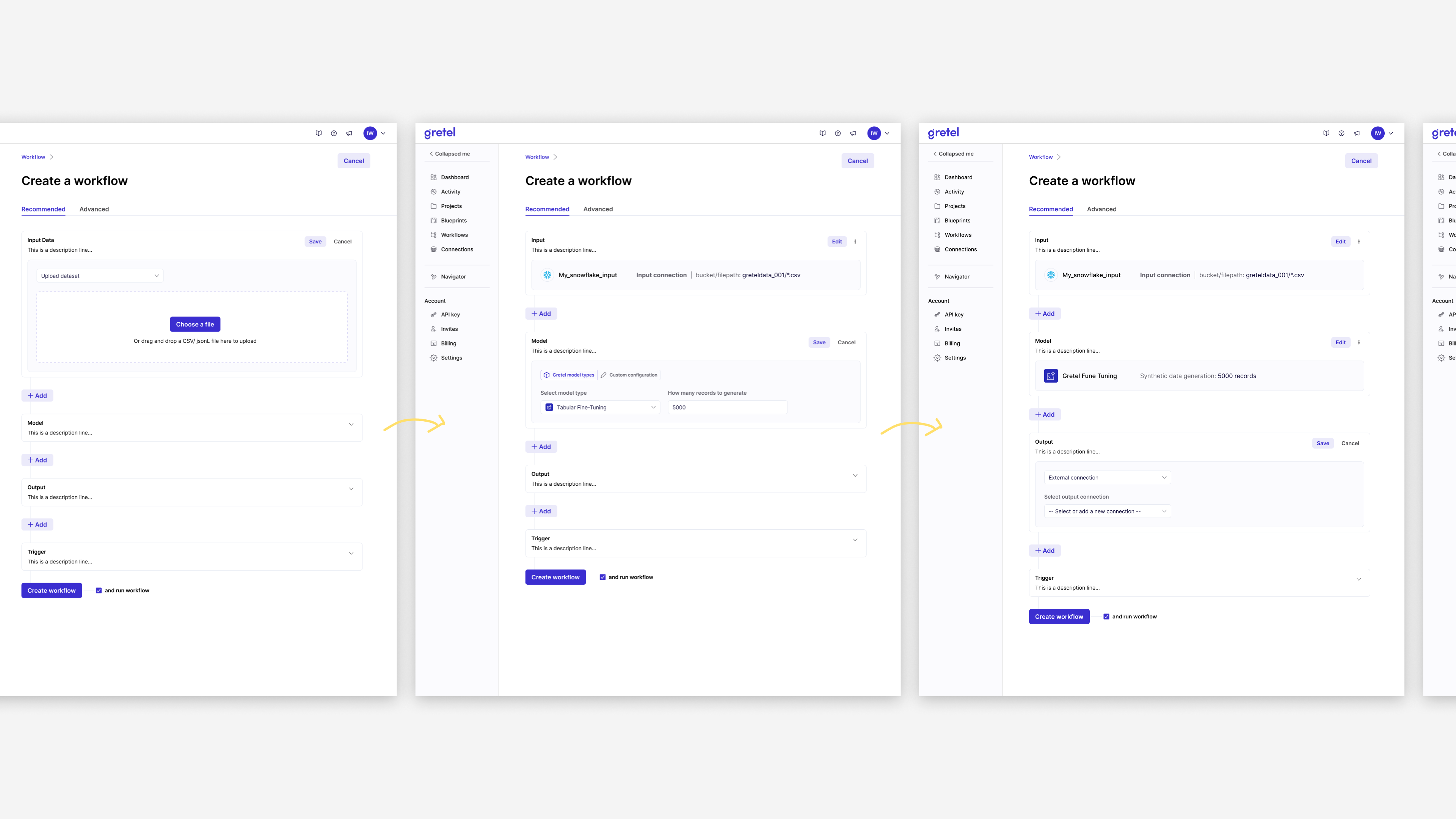 This case study explores the design of Gretel Workflow, a sophisticated system for automating synthetic data generation. As the sole designer, I transformed a complex, code-heavy process into an intuitive, scalable solution through modular design, an interconnected icon system, and user-friendly UI components. The project tackled major challenges in user education, workflow clarity, and technical complexity, ultimately creating a seamless experience that empowers both data scientists and non-technical users alike.