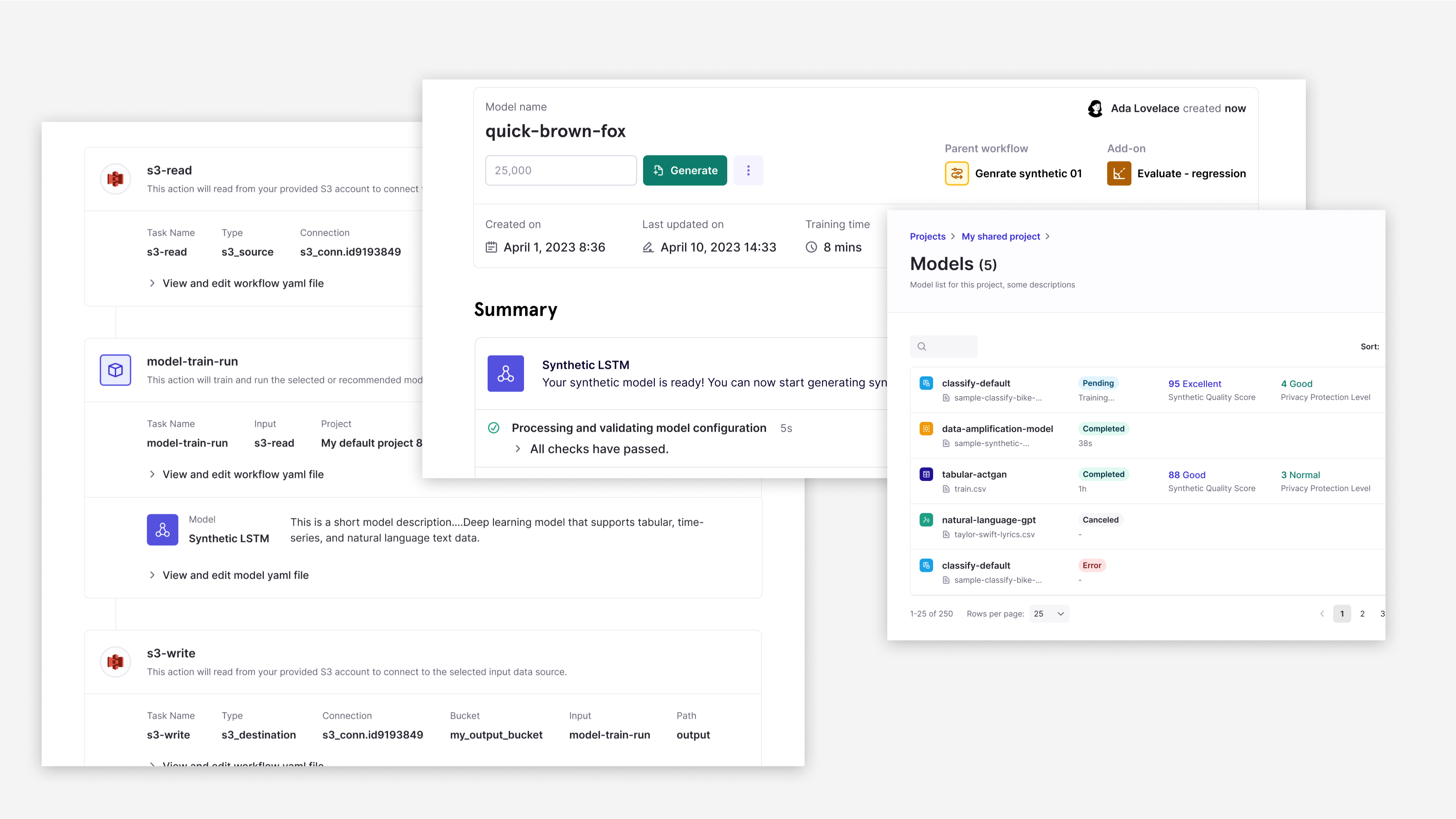 Designing an interface that integrates AI models and handles large datasets simultaneously is inherently complex. Given the novelty of synthetic data AI, user expectations and best practices remain undefined, necessitating extensive user research and iterative design refinements.